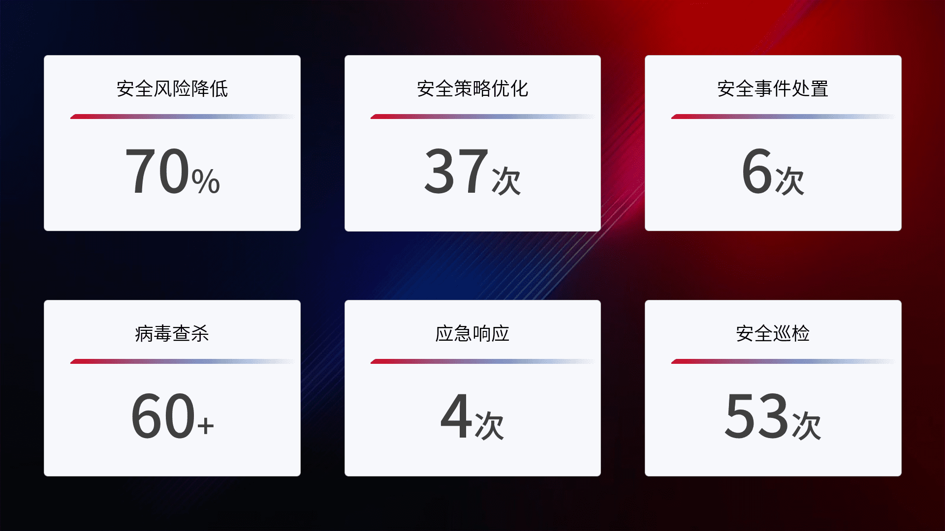 综合报告与文档服务: 定期提供安全事件处置报告、、周/季度总结报告和年度总结报告;详尽的文档服务可帮助客户了解网络安全状况,,,支持决策制定和流程优化。。。。