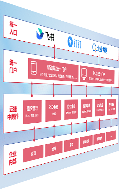 对协作平台提供支持服务,,,,支持企业应用与协作平台对接,,,,包含组织同步、、、消息集成、、、待办集成等。。。支持目前主流的协作平台:钉钉、、、、企微和飞书。。。