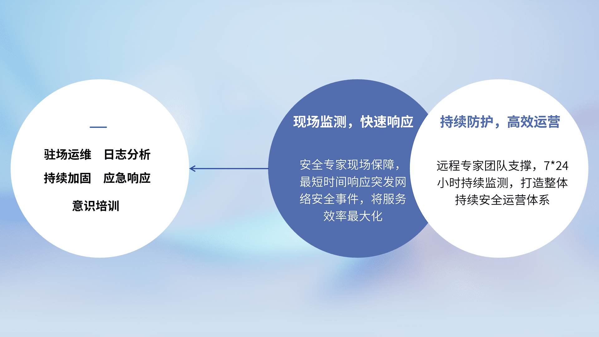 7X24小时持续监测安全事件,保持安全策略有效性,降低资产脆弱性风险,,精准拦截黑客攻击,,,减少被黑客利用的机会,,,,第一时间遏制,,,,降低损失。。。。